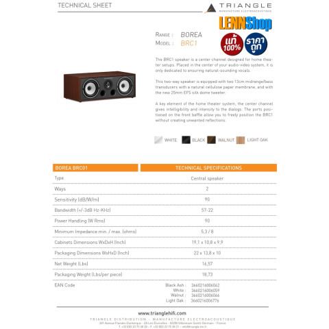 อัพเกรดโฮมเธียเตอร์ของคุณให้เต็มอรรถรสด้วย TRIANGLE BOREA BRC1 ลำโพงเซ็นเตอร์ระดับไฮเอนด์ ที่ออกแบบมาเพื่อถ่ายทอดเสียงพูดและบทสนทนาได้อย่างคมชัดเป็นธรรมชาติ วางไว้ตรงกลางชุดโฮมเธียเตอร์ของคุณ เพื่อให้ได้เวทีเสียงที่สมจริง เหมือนยกโรงภาพยนตร์มาไว้ในบ้าน