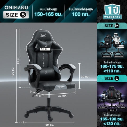 Tengu เก้าอี้เกมมิ่ง รุ่น Onimaru (โอนิมารุ) – รุ่น PRO หนัง PU พรีเมียม ปรับเอนได้ 135°