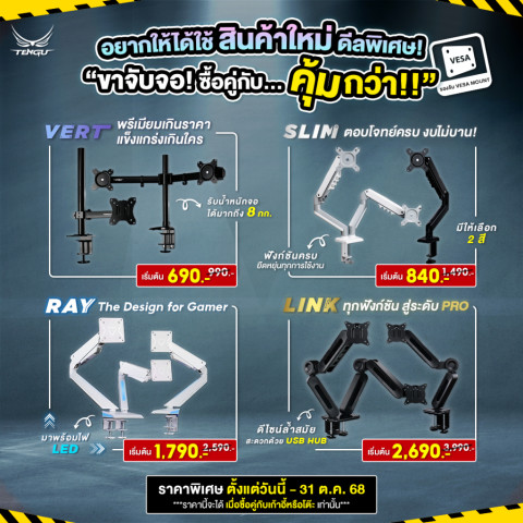 ปรับขึ้นลงได้ประมาณ 10 ซม. ให้เหมาะกับโต๊ะทำงานหรือโต๊ะคอมของคุณที่วางแขนแบบ 1D