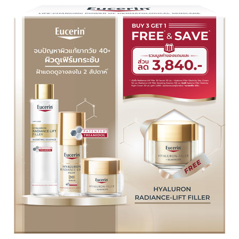 เผยผิวกระชับ อ่อนเยาว์ ดูโกลว์ในชุดเดียวครบด้วย EUCERIN Radiance-Lift 3D Serum 30ML + Day 50ml + Essence 100ml + Night Cream 50ml ชุดบำรุงผิวสำหรับวัย 40+ ที่ต้องการฟื้นฟูผิวให้ดูกระชับ แน่นเฟิร์ม และช่วยลดเลือนปัญหาฝ้าแดด ริ้วรอย และความหย่อนคล้อยอย่างครอบคลุม ตั้งแต่ขั้นตอนแรกของการบำรุงทั้งเช้าและก่อนนอน