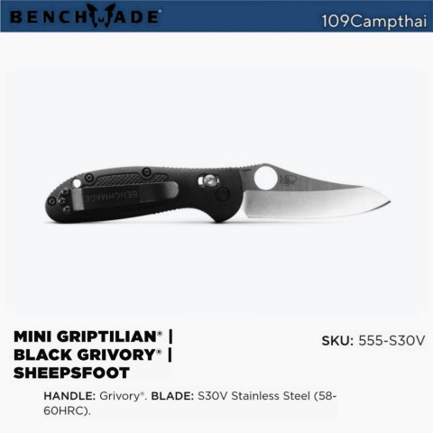 ด้วยชื่อชั้นของแบรนด์ Benchmade จากสหรัฐอเมริกา รุ่น Mini Griptilian® 555 ขึ้นชื่อเรื่องความน่าเชื่อถือ ความลื่นไหลของกลไก และการออกแบบที่ไม่ดุดันจนเกินไป สามารถหยิบใช้ในที่สาธารณะได้อย่างสุภาพแต่ยังคงความดุดันในด้านสมรรถนะการตัดอย่างเต็มที่