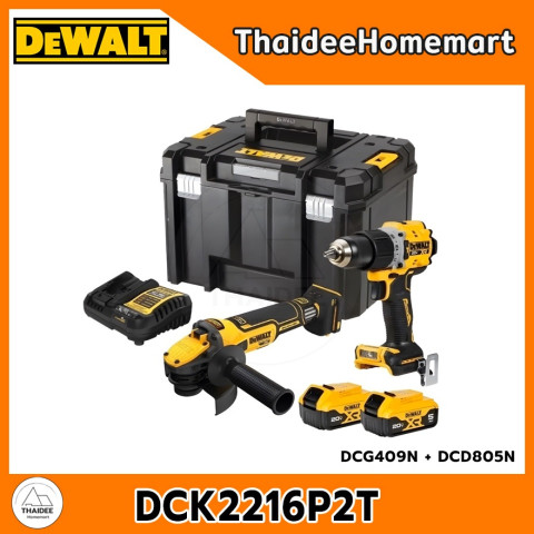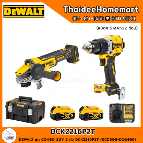 ยกระดับงานช่างมืออาชีพด้วย DEWALT ชุด COMBO 20V 2 ตัว รุ่น DCK2216P2T / DCK2026P2T (DCD805+DCG409 / DCD806+DCD4051) มาพร้อมแบตเตอรี่ลิเธียมไอออนความจุสูง 5.0Ah x 2 ก้อน และรับประกันศูนย์ไทยนานถึง 3 ปี เหมาะสำหรับช่างมืออาชีพและสาย DIY ที่ต้องการพลัง งานไว ความทนทาน และความปลอดภัยในชุดเดียว