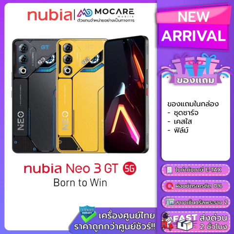 สัมผัสความแรงคุ้มค่าระดับเกมมิ่งกับ Nubia Neo 3 GT / Nubia Neo 3 (5G/4G) / Nubia Neo 2 สมาร์ตโฟนสเปคจัดเต็ม ดีไซน์สายเกมเมอร์ ราคาจับต้องได้ มาพร้อมประกันศูนย์ไทยและบริการครบครันจากร้าน Mocare ให้คุณใช้งานได้อย่างมั่นใจทั้งประสิทธิภาพและการรับประกันในระยะยาว