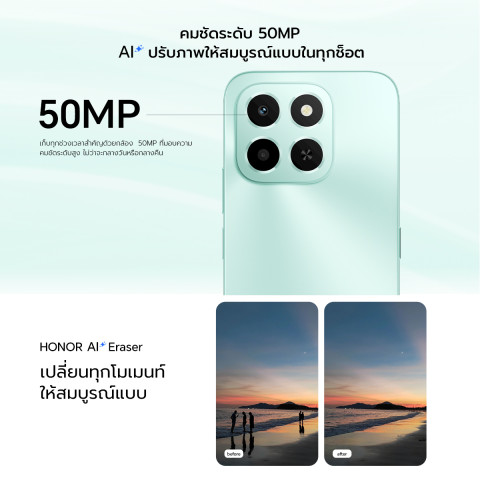 รองรับ RAM 6GB ช่วยให้การเปิดหลายแอปพร้อมกันลื่นไหล และมาพร้อมความจุให้เลือกตั้งแต่ 128GB ถึง 256GB เก็บรูป วิดีโอ แอป และไฟล์งานได้จุใจ ไม่ต้องลบบ่อย กล้องหลังความคมชัดสูง ทำงานร่วมกับ AI ปรับภาพอัตโนมัติ ให้สีสันสวย คมชัด ทั้งภาพบุคคล วิวทิวทัศน์ และภาพตอนแสงน้อย เหมาะทั้งสายโซเชียลและสายถ่ายรูป