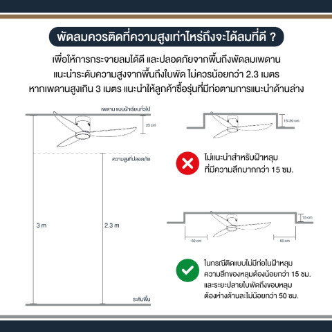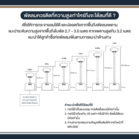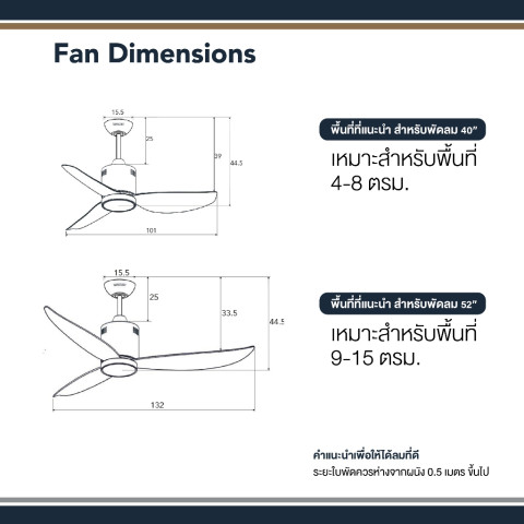 ขนาดพัดลม: 40" (ประมาณ 102 ซม.) และ 52" (ประมาณ 132 ซม.)