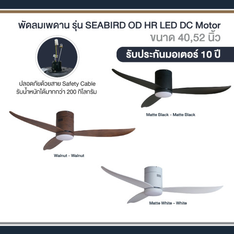 หากคุณกำลังมองหาพัดลมเพดานที่ทั้งสวย ทน ใช้งานได้ทั้งภายในและกึ่งภายนอกอาคาร พร้อมไฟและรีโมทในตัว พัดลมเพดาน MR KEN NEW SEABIRD OD LED DC Motor คือคำตอบที่ลงตัวสำหรับบ้านของคุณ