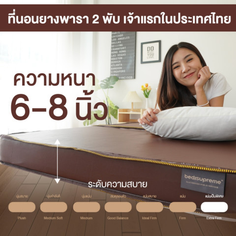 ระดับความนุ่ม-แน่น: แน่นพิเศษ (Extra Firm) เหมาะสำหรับผู้ที่ชอบที่นอนแน่น รองรับแผ่นหลังและกระดูกสันหลังได้ดี