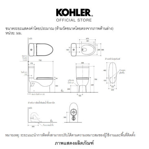 อุปกรณ์แนะนำ: สต๊อปวาล์ว K-12066T-3-CP/K-33983X-9-CP และสายฉีดชำระรุ่น K-98100X-CP, K-97258X-CP หรือ K-77364X-CP