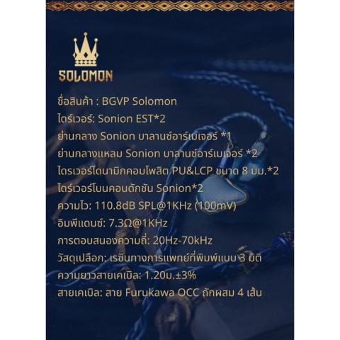 [ประกันศูนย์ไทย] BGVP Solomon หูฟังอินเอียร์ระดับเรือธงรุ่นพิเศษฉลองครบรอบ 10 ปีของ BGVP ที่ผสาน “คุณภาพเสียงระดับไฮเอนด์” และ “งานดีไซน์เชิงศิลป์” ไว้ในคู่เดียว โดดเด่นด้วยระบบไดรเวอร์รวม 9 ตัว (2DD+3BA+2EST+2BC) พร้อมไดรเวอร์เกรดสูงจาก Sonion ให้รายละเอียดครบ เวทีเสียงโปร่ง มิติชัด และบาลานซ์สามย่านอย่างเป็นธรรมชาติ เหมาะทั้งนักฟังจริงจังและนักสะสมรุ่นลิมิเต็ด