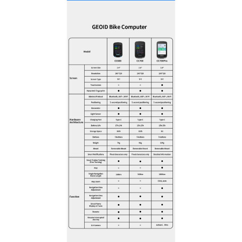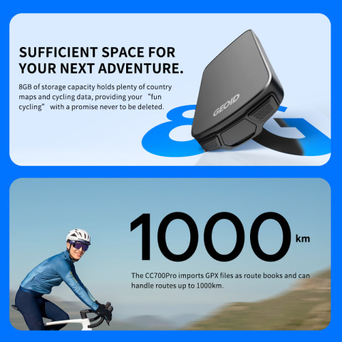GEOID CC700 Pro จักรยานคอมพิวเตอร์ GPS หน้าจอสัมผัสสีขนาด 2.8 นิ้ว ที่ออกแบบมาเพื่อสายปั่นที่ต้องการทั้ง “นำทางแม่นยำ + เก็บสถิติครบ + ควบคุมง่าย” ไม่ว่าจะปั่นทางไกล ทริปท่องเที่ยว หรือซ้อมจริงจัง ตัวเครื่องบูตไวใน 3 วินาที แตะครั้งเดียวก็เริ่มบันทึกได้ทันที พร้อมแผนที่ในตัวและหน่วยความจำ 8GB ให้คุณปั่นได้มั่นใจขึ้นทุกเส้นทาง