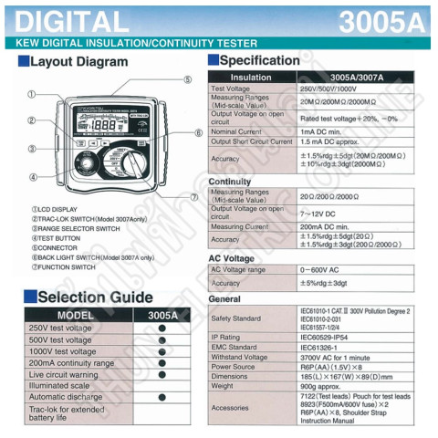 Kyoritsu เครื่องตรวจสอบฉนวนแบบดิจิตอล รุ่น 3005A (Digital Insulation / Continuity Testers / Insulation Test Meter)