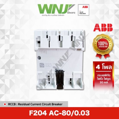 ABB RCCB กันดูด Type AC รุ่น F204 AC-80/0.03 (4 โพล 80A) อุปกรณ์ตัดไฟรั่ว/กันดูดคุณภาพสูงสำหรับระบบไฟฟ้า 3 เฟส ช่วยเพิ่มความปลอดภัยให้ผู้ใช้งานและลดความเสี่ยงจากอุบัติเหตุไฟฟ้าดูดหรือไฟรั่วในอาคาร บ้าน โรงงาน และงานระบบไฟฟ้าทั่วไป ผลิตตามมาตรฐาน IEC 61008 มั่นใจได้ในประสิทธิภาพและความเชื่อถือได้