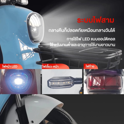 ไฟส่องสว่าง: ไฟหน้า LED + ไฟเลี้ยวหน้า-หลัง + ไฟท้าย