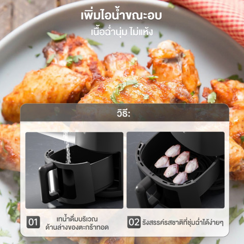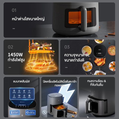 หม้อทอดไร้น้ำมันใช้ ลมร้อนความเร็วสูง ช่วยสกัดไขมัน ไม่ต้องอุ่นเครื่องนาน เวลาอบเร็วขึ้น