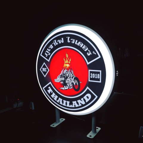 ป้ายไฟทรงกลม 2 หน้า (เห็นชัดทั้งสองด้าน เหมาะกับป้ายแขวนหน้าร้าน/ติดทางเดิน)