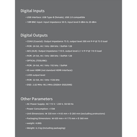 ความละเอียดที่รองรับ: PCM สูงสุด 32-bit/1536kHz, Native DSD2048