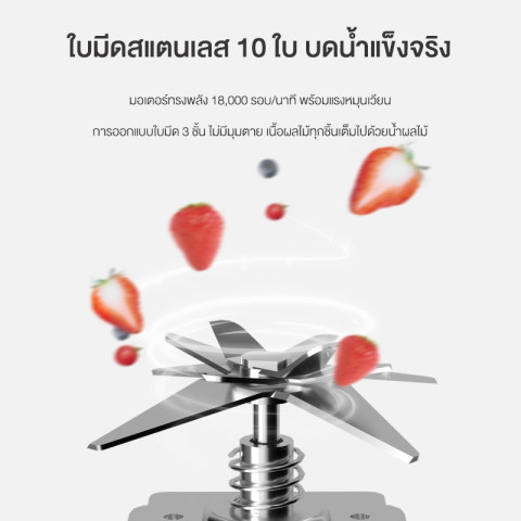 ใบมีดสแตนเลส 10 ใบ หมุนเร็วสูงสุด 18,000 RPM ช่วยปั่นให้ละเอียดขึ้น