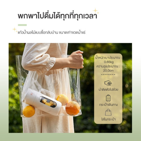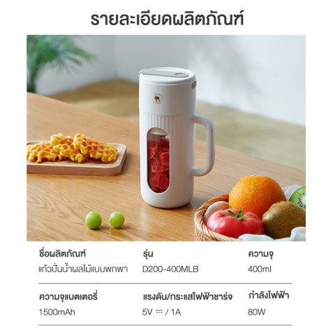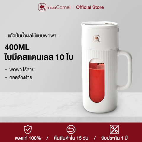 CAMEL เครื่องปั่นผลไม้พกพา ไร้สาย 400ML ใบมีด 10 ใบ ชาร์จ USB (สี White) ในราคา 458.49 บาท ตอบโจทย์สายเฮลท์ตี้และคนชอบความสะดวก—ปั่นสมูทตี้ น้ำผลไม้ หรือเครื่องดื่มโปรดได้ทุกที่ ไม่ต้องเสียบปลั๊ก ขนาดกะทัดรัดพกพาง่ายเหมือนขวดน้ำ เหมาะทั้งที่ทำงาน ฟิตเนส เดินทาง หรือใช้ที่บ้าน