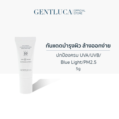 [GWP สินค้าแถม] Gentluca UV Balance Anti-aging SPF50+ PA++++ (5g) กันแดดสูตร 100% Non-Chemical เนื้อบางเบา เกลี่ยง่าย สบายผิว ไม่ทิ้งคราบขาว ช่วยปกป้องผิวได้รอบด้านทั้ง UVA/UVB รวมถึง Ultra-Long UVA (380–400 nm) พร้อมรับมือแสงสีฟ้า (HEV) รังสีอินฟาเรด (IR) และฝุ่นมลภาวะ PM2.5 เหมาะสำหรับพกพา ใช้ง่าย ล้างออกง่ายด้วยคลีนเซอร์ทั่วไป และสามารถใช้เป็นมอยส์เจอไรเซอร์ในตอนเช้าแบบ “จบในตัวเดียว” ได้
