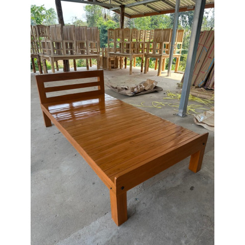 เตียงนอนไม้สักแท้ขนาด 4 ฟุต ดีไซน์เรียบหรู โทนสีน้ำตาลธรรมชาติ แข็งแรงทนทาน เหมาะกับทั้งห้องนอนสไตล์มินิมอลและคลาสสิก ให้ความรู้สึกอบอุ่น พร้อมยกระดับบรรยากาศการพักผ่อนในทุกวัน