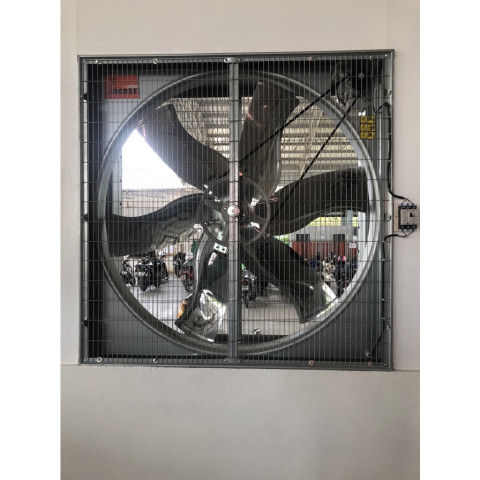 พัดลมอุตสาหกรรม HORSE รุ่น HC50 ระบบแขนยก ขนาด 50 นิ้ว (6 ใบพัดสแตนเลส) ทางเลือกสำหรับงานระบายอากาศในฟาร์ม โรงเรือน และโรงงาน ช่วยดูด-เป่าอากาศได้อย่างมีประสิทธิภาพ พร้อมระบบแขนยกสำหรับเปิด-ปิดบานเกร็ด เพิ่มความสะดวกในการใช้งานและควบคุมทิศทางลม