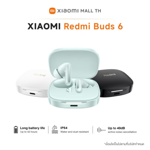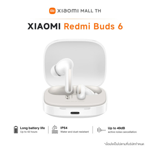 Xiaomi Redmi Buds 6 หูฟังบลูทูธ True Wireless น้ำหนักเบา ใส่สบาย ให้เสียงคมชัดครบทุกย่าน พร้อมการเชื่อมต่อที่เสถียรสำหรับการฟังเพลง ดูหนัง และคุยสายได้อย่างลื่นไหลตลอดวัน ในโทนสี White เรียบหรูเข้ากับทุกสไตล์ ในราคา 1,423.11 บาท