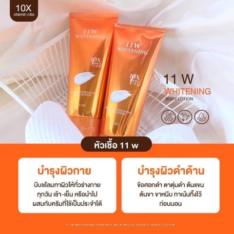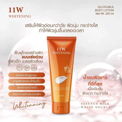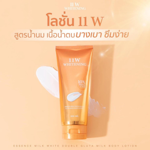 11W Whitening โลชั่นน้ำตบผิวขาว (สติกเกอร์ใหม่ล่าสุด) ยกลัง 40 หลอด ขนาด 200 ml/หลอด คุ้มค่าสำหรับร้านค้า ตัวแทนจำหน่าย หรือสต็อกใช้ยาวๆ มาพร้อมการบำรุงผิวแบบโลชั่นเนื้อบางเบา ซึมไว ไม่เหนียวเหนอะหนะ ช่วยให้ผิวดูเรียบเนียน กระจ่างใสขึ้นอย่างเป็นธรรมชาติ