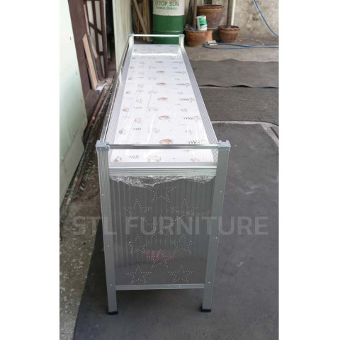 วัสดุ: โครงเหล็กหุ้มอลูมิเนียม / ท็อปบนกระเบื้อง / ด้านข้าง-ด้านหลังอลูมิเนียม