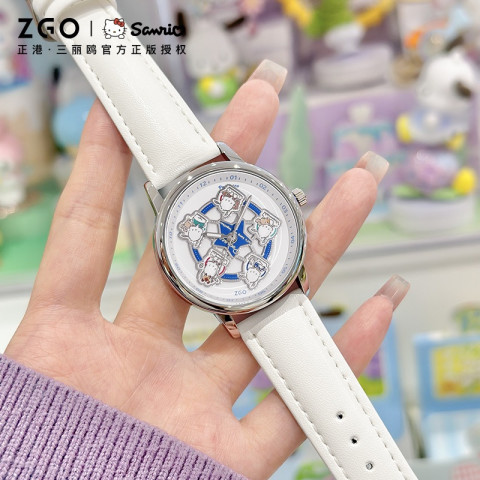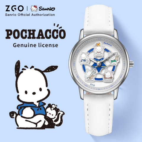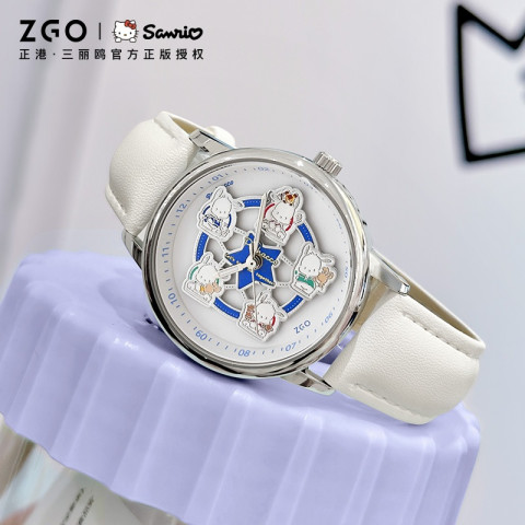 ZGO x Sanrio ม้าหมุน นาฬิกาข้อมือผู้หญิง รุ่น 2121 ดีไซน์หน้าปัดทรงกลมสุดน่ารัก สไตล์เรียบง่ายใส่ได้ทุกวัน เหมาะเป็นของขวัญวันเกิดสำหรับนักเรียนหญิงหรือคนพิเศษ มาพร้อมระบบควอตซ์เดินตรง ใช้งานสะดวก และกันน้ำระดับใช้งานทั่วไป เพิ่มลุคหวานละมุนด้วยสายหนัง PU สีขาว ใส่แล้วดูคลีน สบายตา
