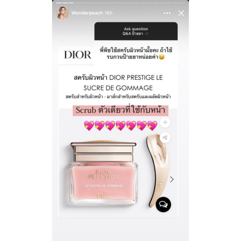 Dior Prestige Le Sucre de Gommage (Sugar Scrub) 150ml ยกระดับกิจวัตรการทำความสะอาดผิวให้หรูหราดุจสปาระดับไฮเอนด์ ด้วยสครับผิวหน้าจากไลน์ Dior Prestige ที่มอบสัมผัสเนียนนุ่ม สดชื่น และผ่อนคลาย พร้อมดูแลผิวอย่างอ่อนโยนด้วยพลังบำรุงจาก กุหลาบกร็องวิลล์ อันเป็นเอกลักษณ์ของ Dior Prestige ช่วยให้ผิวดูเรียบเนียน กระจ่างใส และเปล่งประกายสุขภาพดีหลังใช้