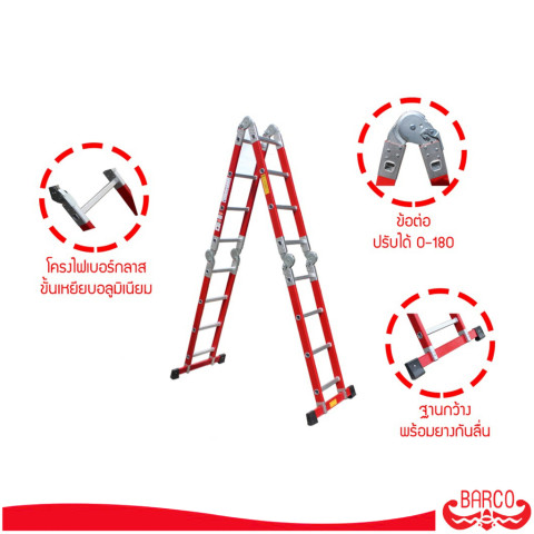 BARCO บันไดอเนกประสงค์ไฟเบอร์กลาส M5 4x6 (24 ขั้น) รับได้ 150 กก.