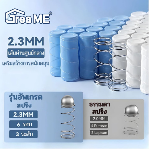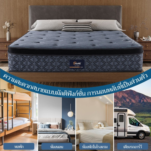 GreaME ที่นอนพอกเก็ตสปริง เกรดโรงแรม สีเทา นุ่มแน่นกำลังดีด้วยความแข็งปานกลาง รองรับสรีระได้ดี หลับสบายตลอดคืน ดีไซน์เรียบหรูโทนสีเทา เหมาะทั้งห้องนอนบ้าน คอนโด หรือห้องพักสไตล์โรงแรม
