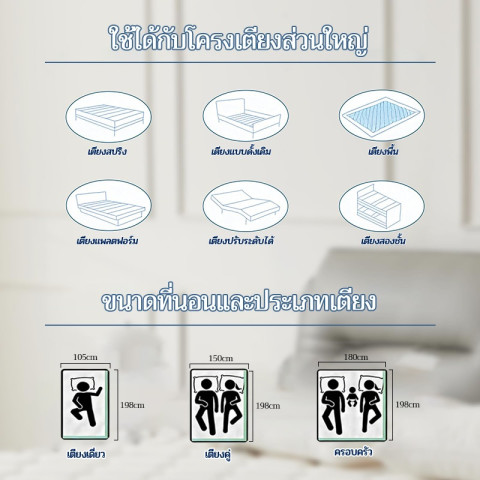 แกะพลาสติกและวางที่นอนบนเตียง/พื้นราบ ที่นอนจะเริ่มคืนตัวทันที