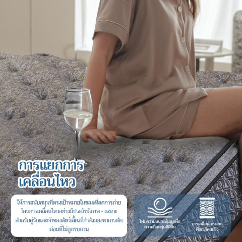 จุดเด่นของรุ่นนี้คือระบบ Pocket Spring ที่ช่วยลดแรงสั่นสะเทือนเวลาพลิกตัว นอนคู่ไม่รบกวนกัน พร้อมโครงสร้างที่นอนหนา 30 ซม. ให้ความรู้สึกแน่นเฟิร์มกำลังดี รองรับน้ำหนักได้มั่นคง เหมาะกับคนที่ต้องการที่นอนไม่ยวบเกินไป