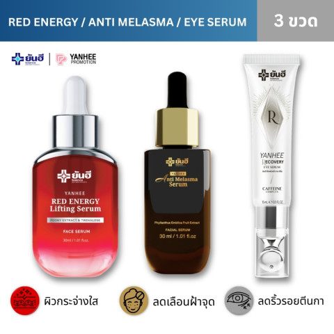 Yanhee Set Serum เซ็ทเซรั่มดังยันฮี (ของแท้ 100%) เซ็ทดูแลผิวแบบครบขั้นตอน เพื่อผิวดูหน้าเด้ง อิ่มฟู เรียบเนียน และแลดูกระจ่างใส ช่วยดูแลปัญหาริ้วรอย ร่องลึก ความหมองคล้ำ ฝ้า และจุดด่างดำ ด้วยสูตรที่ผสานสารสกัดจากธรรมชาติและสารบำรุงเข้มข้น เหมาะสำหรับคนที่ต้องการฟื้นบำรุงผิวให้กลับมาดูแข็งแรง สุขภาพดี