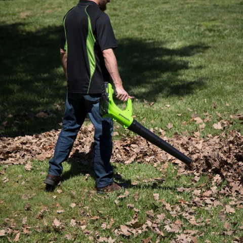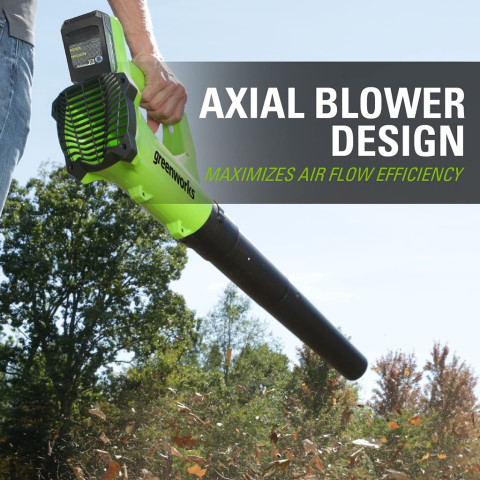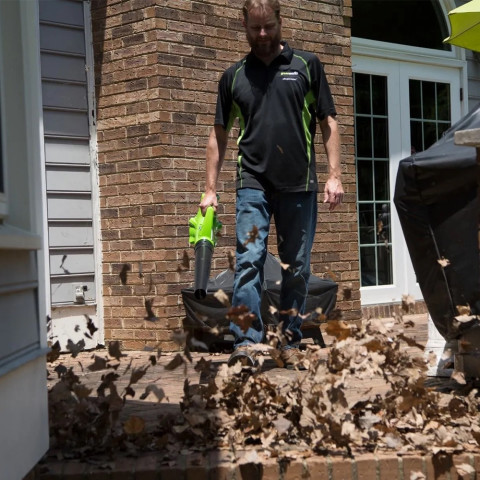 Greenworks เครื่องเป่าลม ขนาด 24V พร้อมแบตใหม่และแท่นชาร์จ (2402207TH) ราคา 6,700.00 บาท คือผู้ช่วยงานสวนและงานทำความสะอาดรอบบ้านที่ทั้งแรง เบา และใช้งานง่าย เหมาะสำหรับเป่ากวาดใบไม้ เศษหญ้า ฝุ่นตามลานบ้าน ทางเดิน โรงรถ หรือมุมอับต่าง ๆ โดยไม่ต้องยุ่งยากกับน้ำมัน ลดควันและเสียงรบกวน พร้อมแบตเตอรี่และแท่นชาร์จในชุดเดียว ใช้งานได้ทันที