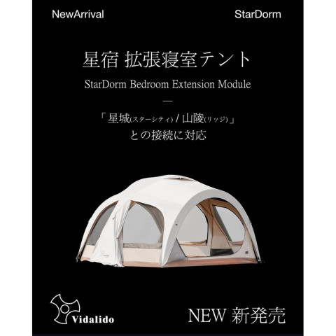 Vidalido Star Dorm Tent (Star City Bedroom) (Ridge) สีขาว เต็นท์ห้องนอนสำหรับสายแคมป์ที่ต้องการทั้งความสะดวกและความเป็นส่วนตัว ใช้งานได้ทั้งแบบกางเดี่ยวๆ หรือเชื่อมต่อกับเต็นท์รุ่นอื่นๆ ได้หลายรูปแบบ เพื่อขยายพื้นที่ให้เหมาะกับทริปครอบครัวหรือกลุ่มเพื่อน โครงสร้างแข็งแรง กางง่าย ใช้เวลาไม่ถึง 10 นาที พร้อมหน้าต่างและช่องระบายอากาศรอบทิศทาง เปิดเข้า-ออกได้ 2 ทาง ช่วยถ่ายเทอากาศดี ใช้ได้ทุกฤดู