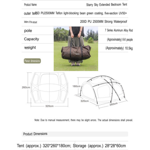 ผ้าเต็นท์: Oxford 75D เคลือบ PU 2500MM + Titanium Black Coated ช่วยป้องกันแสง UV