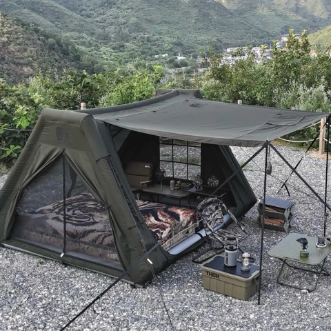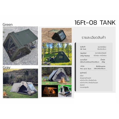 16Ft - Tank 08 เต็นท์เสาลมสุดเท่สำหรับสายแคมป์ที่ต้องการความสะดวก “กางไว” พร้อมผ้า TC Ripstop ที่ให้ฟีลลิ่งแน่น ทน และระบายอากาศได้ดี มาพร้อม ส่วนขยายด้านข้าง เพิ่มพื้นที่ใช้งาน เหมาะสำหรับ 1-2 คน ใช้ได้ทั้งทริปชิล ๆ และแคมป์จริงจัง