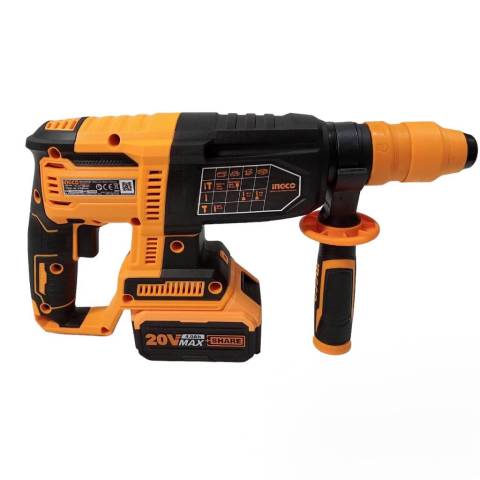 INGCO สว่านโรตารี่ไร้สาย 26 มิล 3 ระบบ (ถอดหัวได้) รุ่น CRHLI202289 20V ครบชุด ตัวจบงานเจาะ–สกัดสำหรับช่างที่ต้องการความคล่องตัวแบบไร้สาย ใช้ได้ครบทั้ง เจาะไม้ เจาะเหล็ก เจาะปูน/คอนกรีต พร้อมชุดอุปกรณ์ให้มาครบ แบตเตอรี่ 20V 4.0Ah จำนวน 2 ก้อน และแท่นชาร์จ ใส่กล่องพลาสติกพกพาง่าย ทำงานต่อเนื่องได้มั่นใจ พร้อม รับประกัน 2+2 ปี ในราคา 6,190.00 บาท