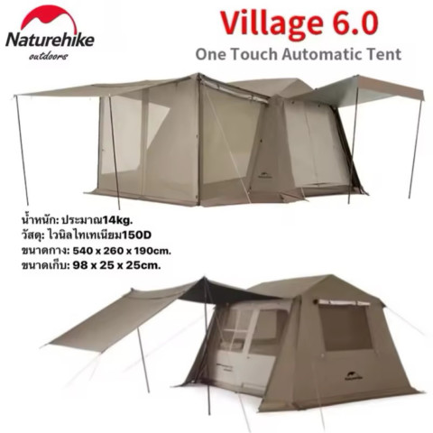Naturehike Village 6.02 เต็นท์กางอัตโนมัติ 3-4 คน (มีให้เลือก 2 รุ่น / รุ่น Flagship มีห้องเสริมด้านหน้า)