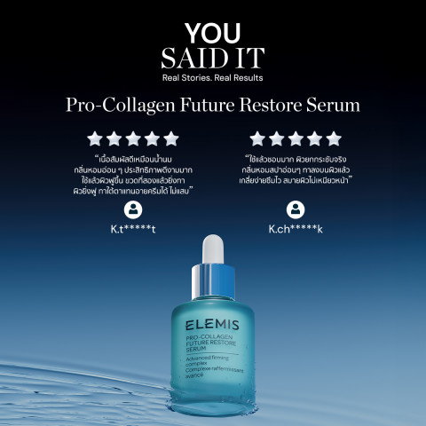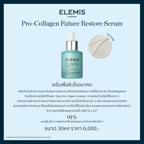 Elemis Pro-Collagen Future Restore Serum 30ml. เซรั่มนวัตกรรมใหม่ล่าสุดจาก ELEMIS เพื่อผิวที่ดูแน่นกระชับ อิ่มฟู และริ้วรอยแลดูลดลงอย่างเห็นได้ชัด ด้วยการดูแล “ปัญหาคอลลาเจนที่ลดลง” ตรงจุด ให้ผิวดูอ่อนเยาว์ขึ้นในเวลาอันรวดเร็ว
