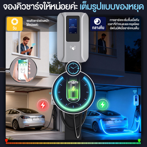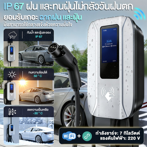 Wall Charger เครื่องชาร์จรถไฟฟ้า EV ต่อแอปได้ (Bluetooth/Wi‑Fi) 7KW เครื่องชาร์จติดผนังสำหรับรถยนต์ไฟฟ้า ชาร์จสะดวกที่บ้าน/อาคาร ควบคุมการใช้งานผ่านแอป พร้อมระบบความปลอดภัยและกันน้ำกันฝุ่น เหมาะสำหรับรถไฟฟ้าหลากหลายรุ่น ใช้งานง่าย ติดตั้งได้ทั่วประเทศไทย