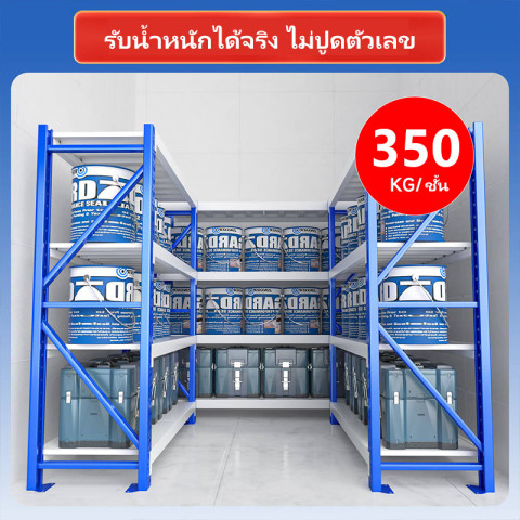 รับน้ำหนักจริง ไม่โอ้อวด รองรับของหนักได้ถึง 350 กก./ชั้น เหมาะกับสินค้าคลัง เครื่องมือ กล่องพัสดุ น้ำดื่ม และของใช้ขนาดใหญ่