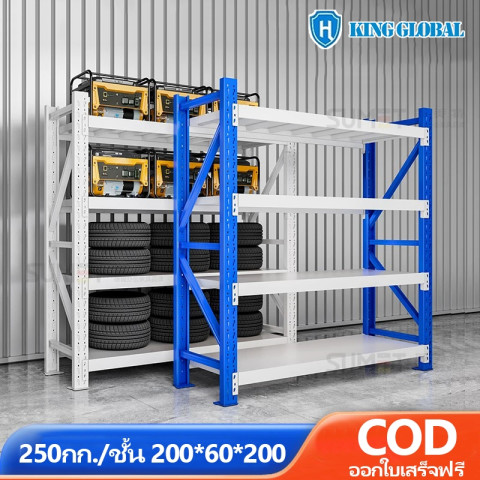 ชั้นเหล็กวางของ 4 ชั้น ขนาด 200×60×200 ซม. สี น้ำเงิน-ขาว รับน้ำหนัก 350 กก./ชั้น โครงสร้างเหล็กหนาเสริมพิเศษ เหมาะทั้งงานบ้าน งานร้านค้า และคลังสินค้า จัดของหนักได้มั่นใจ ใช้งานยาวนาน พร้อมบริการ เก็บเงินปลายทาง (COD) และ ออกใบแจ้งหนี้/ใบเสร็จ ได้