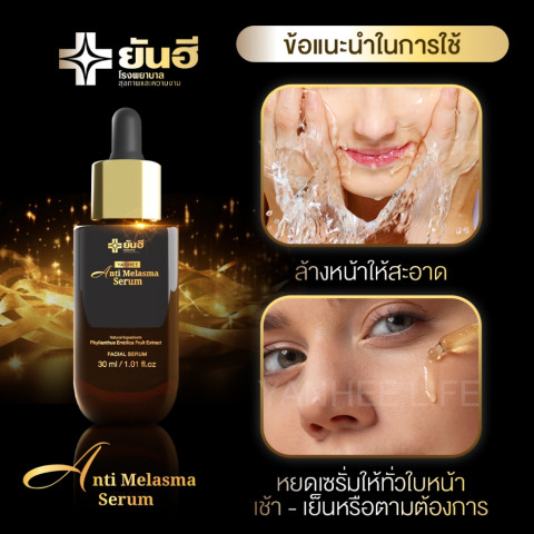 หลังล้างหน้า ใช้ YANHEE ANTI MELASMA SERUM (ดำ) ทาทั่วใบหน้าและลำคอ เช้า-ก่อนนอน