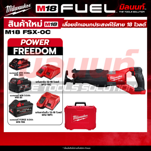 Milwaukee M18 FSX-0C เลื่อยชักเอนกประสงค์ไร้สาย 18 โวลต์ รุ่นสายโหดระดับ SUPER SAWZALL™ ที่ให้พลังตัดใกล้เคียงเลื่อยชักไฟฟ้าแบบมีสาย 15 แอมป์ เหมาะสำหรับงานรื้อถอน งานโครงสร้าง งานติดตั้ง และงานตัดวัสดุหลากหลายประเภท มาพร้อมแบตเตอรี่และแท่นชาร์จ QT 3 พร้อมใช้งาน คุ้มค่าทั้งแรงตัดและความคล่องตัวในไซต์งาน