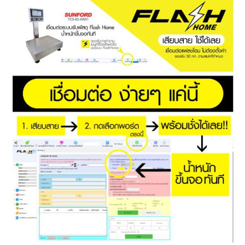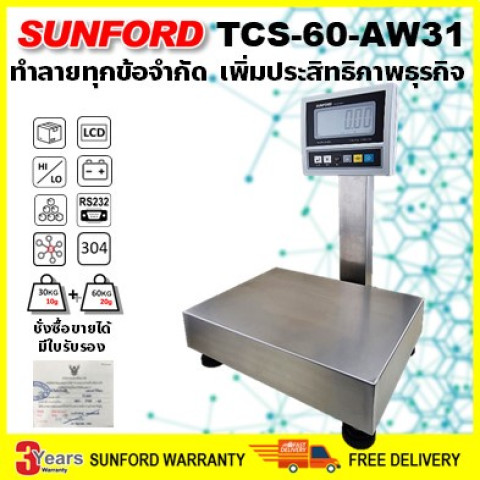 SUNFORD TCS-60-AW31 เครื่องชั่งดิจิตอล 60 กก. สแตนเลสตั้งโต๊ะ/ตั้งพื้น ต่อคอมพิวเตอร์ (โปรแกรม Flash Home)