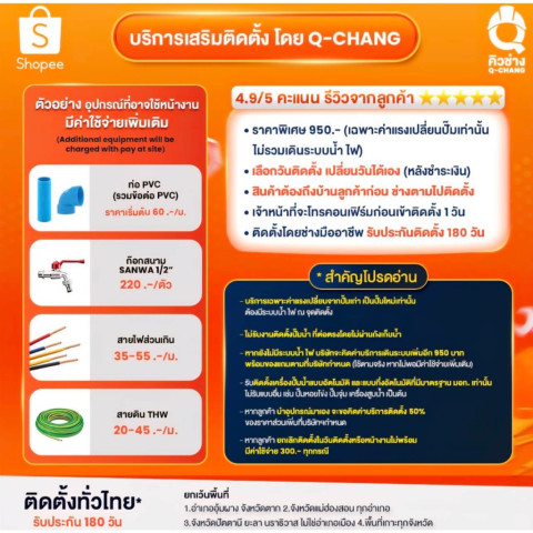 สามารถใช้บริการติดตั้งโดยคิวช่าง (มีค่าใช้จ่ายเพิ่มเติม) เหมาะสำหรับผู้ที่ต้องการติดตั้งอย่างถูกต้องและพร้อมใช้งาน