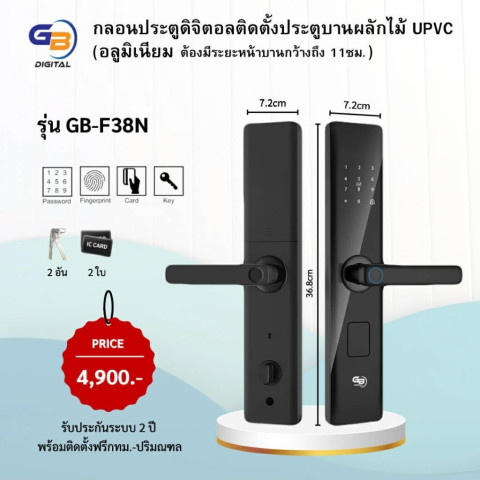 Digital Door Lock รุ่น GB-F38 กลอนประตูดิจิตอลบานผลัก ทางเลือกที่ลงตัวสำหรับประตูบานผลัก ไม้ / UPVC ติดตั้งสวย ใช้งานง่าย ปลอดภัย และสะดวกสุดๆ ด้วยระบบปลดล็อคครบทุกแบบ เหมาะทั้งบ้านพักอาศัย คอนโด และออฟฟิศ